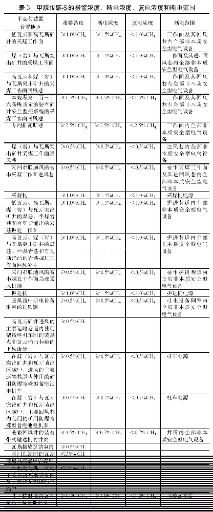 第一百六十八條 甲烷傳感器報警濃度、斷電濃度、復(fù)電濃度和斷電范圍必須符合表3規(guī)定。