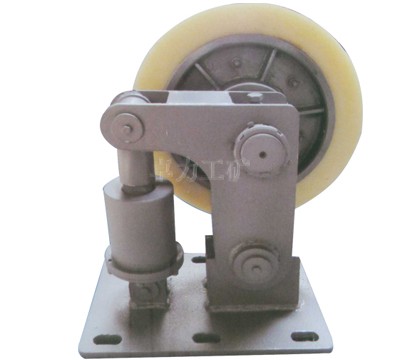 滾輪罐耳主要由輪軸、支架、緩沖裝置、底座等組成。