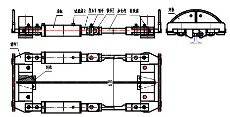 該設備適用于50kg/m及60kg/m型號鋼軌無縫線路應力放散和長軌鋪設,更換斜鐵座,可適用于75kg/m鋼軌線路。現(xiàn)場施工時,在低于鎖定軌溫的一定范圍內,用該設備把處于零應力狀態(tài)的鋼軌,強行拉伸到鎖定軌溫時的長度,進行重新鎖定。與同類產(chǎn)品相比,該設備具有構思獨特,機體輕便,操作簡易,拉軌力大,不傷害軌頭工作面等特點。二、主要技術參數(shù)1、最高額定工作壓力 57Mpa2、最大拉軌力 2×450kN3、工作油缸最大行程 ≥760mm4、兩拉桿中心距 360mm寬體610mm5、鎖定方式 斜鐵夾緊軌腰6、油泵電機功率 3kW電壓 380V流量 ≥3L/min7、機組質量 ≤370kg8、電動泵站質量 85kg(不包括油管)三、基本結構與工作原理