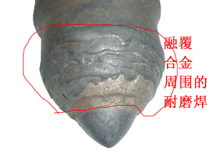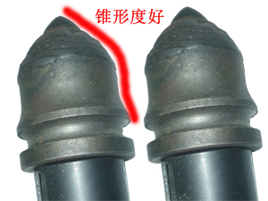 優勢一: 齒尖鑲有22mm超粗壓燒優質硬質合金, 與其他截齒相比,更加堅固耐磨 | 優勢二: 合金周圍融覆耐磨焊層, 有效保護好合金不脫落,更長久耐用。 |