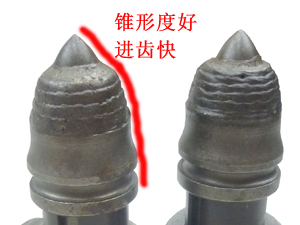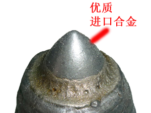 優勢一: 齒尖采用進口合金, 其耐磨性是普通截齒的2~3倍 | 優勢二: 齒尖鑲有超粗粒壓燒結硬質合金鑲嵌, 合金直徑為22mm,超級耐磨 |